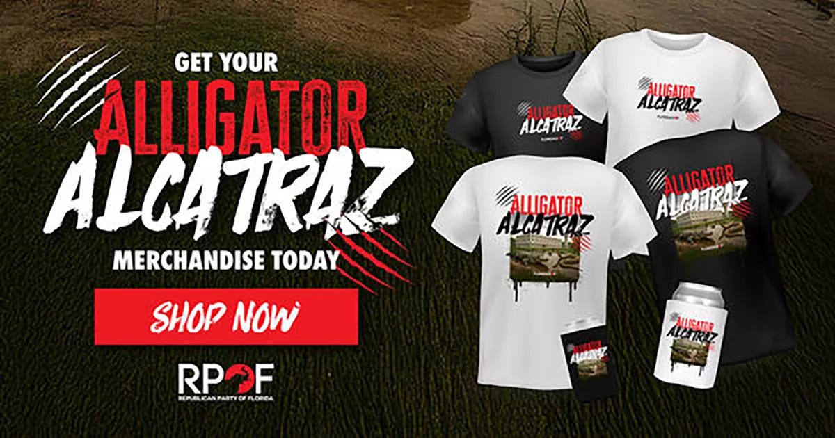 If the ethics weren’t already in the toilet, consider this: the state—or one of its contracted vendors—is now selling “Alligator Alcatraz” merchandise.